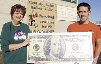 Our week #15 Shelby Shopper & Info Football Contest winner was Brandon Couch of Shelby. His favorite NFL team is the Baltimore Ravens. Brandon is pictured above receiving his $100 winnings from Cindy Edwards of Keith’s Carpet & Floor Covering, located at 1162 E. Marion St. in Shelby, who is one of our contest sponsors. This was Brandon’s first time playing our contest. His ballot was one of seven ballots received picking 11 out of 12 games correctly. He won by guessing the exact tie-breaker score of 38 points. Be sure to enter next week’s pro football contest and visit all 12 sponsors for some great deals!