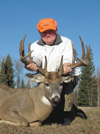 Vince Mowery is pictured with a buck he killed in Loon Lake Saskatchewan, Canada. The monster deer scored 174 0/8 for good symmetry and good tine length. The massive buck weighed 283 lbs. and was bagged in warm weather, for the area, at about 22º. This buck is Vince’s personal best to date.